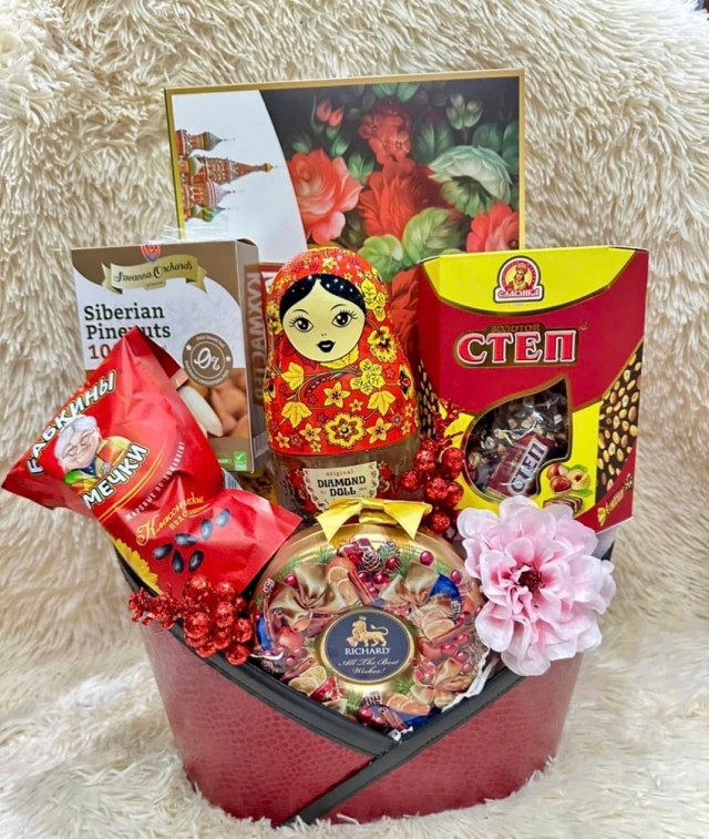 Mỗi set quà Tết của Âu Việt Phát đều được chọn lọc từ những thương hiệu uy tín của Nga và châu Âu: socola Korova, trà búp bê Nga, rượu vang Pháp, hạt thông, kẹo Zaini, bánh quy Unicoft... Tất cả được kết hợp khéo léo trong thiết kế sang trọng, vừa mang nét hiện đại châu Âu, vừa giữ tinh thần truyền thống Tết Việt.