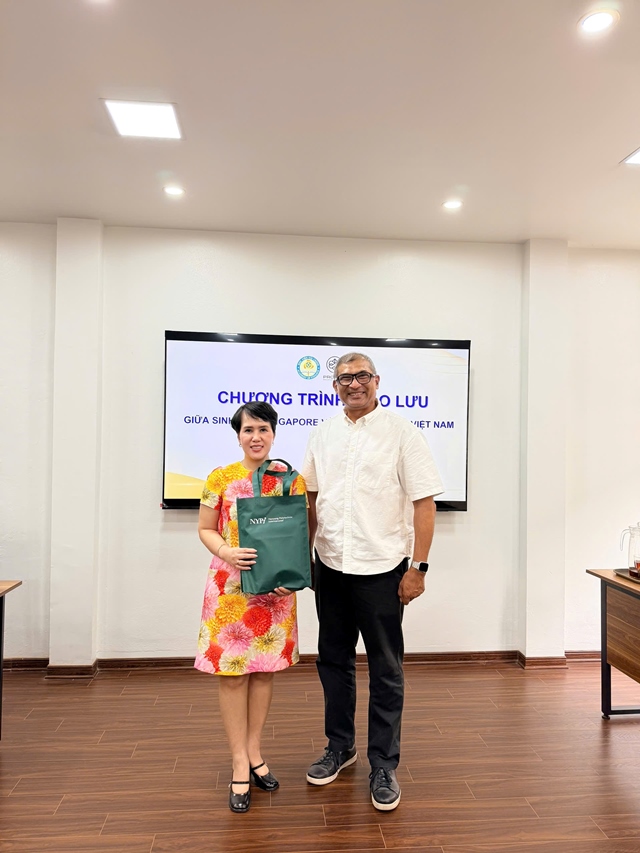 Đại diện Trường Trường NanYang (Singapore) gửi quà cảm ơn Bà Jolie Hướng Dương - CEO & Founder ProsFIN